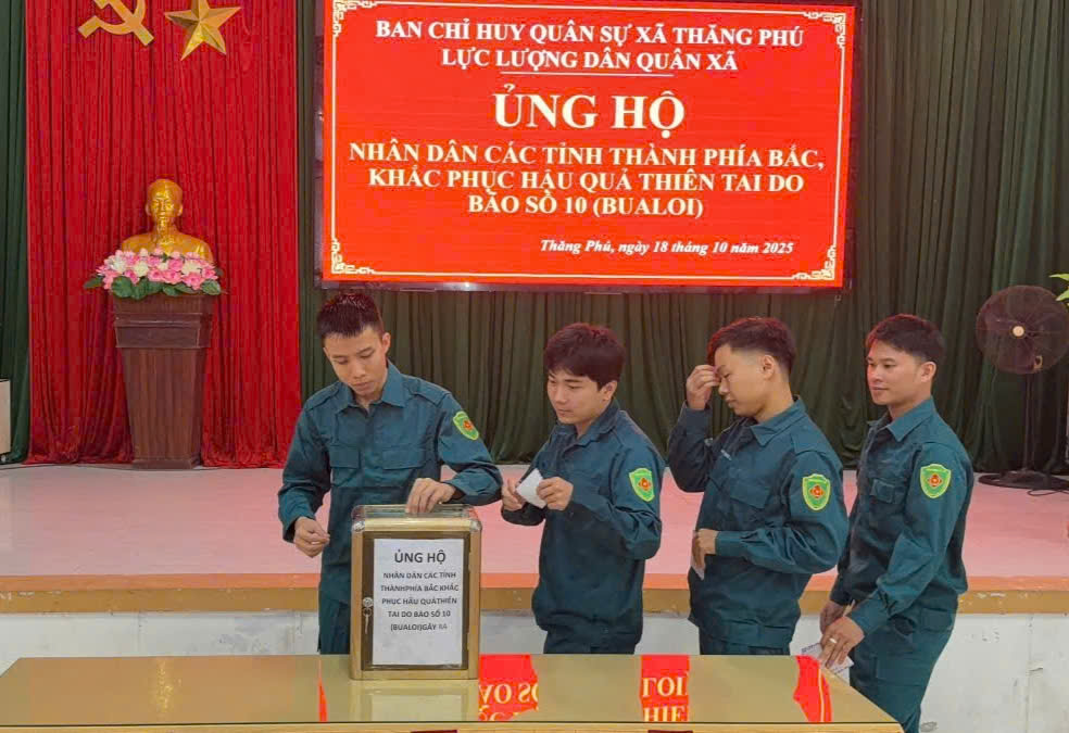 Sáng ngày 18/10, Ban Chỉ huy Quân sự xã Thăng Phú tổ chức họp lực lượng dân quân tự vệ, đánh giá công tác thời gian qua và triển khai nhiệm vụ trong thời gian tới. Tại cuộc họp, cán bộ, chiến sĩ dân quân xã đã nhiệt tình hưởng ứng lời kêu gọi ủng hộ nhân dân các tỉnh phía Bắc bị ảnh hưởng bởi bão số 10, đóng góp tổng số tiền 12,9 triệu đồng. Sự sẻ chia kịp thời này thể hiện tinh thần trách nhiệm, tình đồng chí đồng bào sâu sắc của lực lượng vũ trang địa phương.