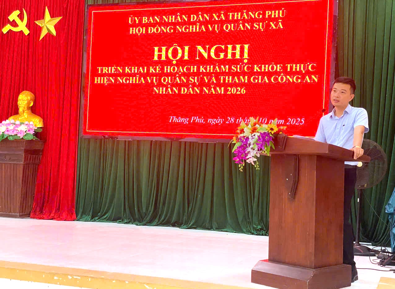 Theo chỉ tiêu giao, năm 2026, xã Thăng Phú có 29 thanh niên thực hiện NVQS và 5 thanh niên tham gia nghĩa vụ công an nhân dân. Để đảm bảo, UBND xã quyết định gọi khám sức khoẻ 136 thanh niên trong độ tuổi thực hiện NVQS tại địa phương. Thời gian tổ chức khám tuyển dự kiến là ngày 19/11/2025 tại UBND xã Thăng Phú. Hội đồng nghĩa vụ quân sự xã yêu cầu các thành viên hội đồng được phân công bàn giao quyết định gọi khám sức khoẻ đến từng thanh niên theo đúng quy định, kiên quyết xử lý các trường hợp chống khám.