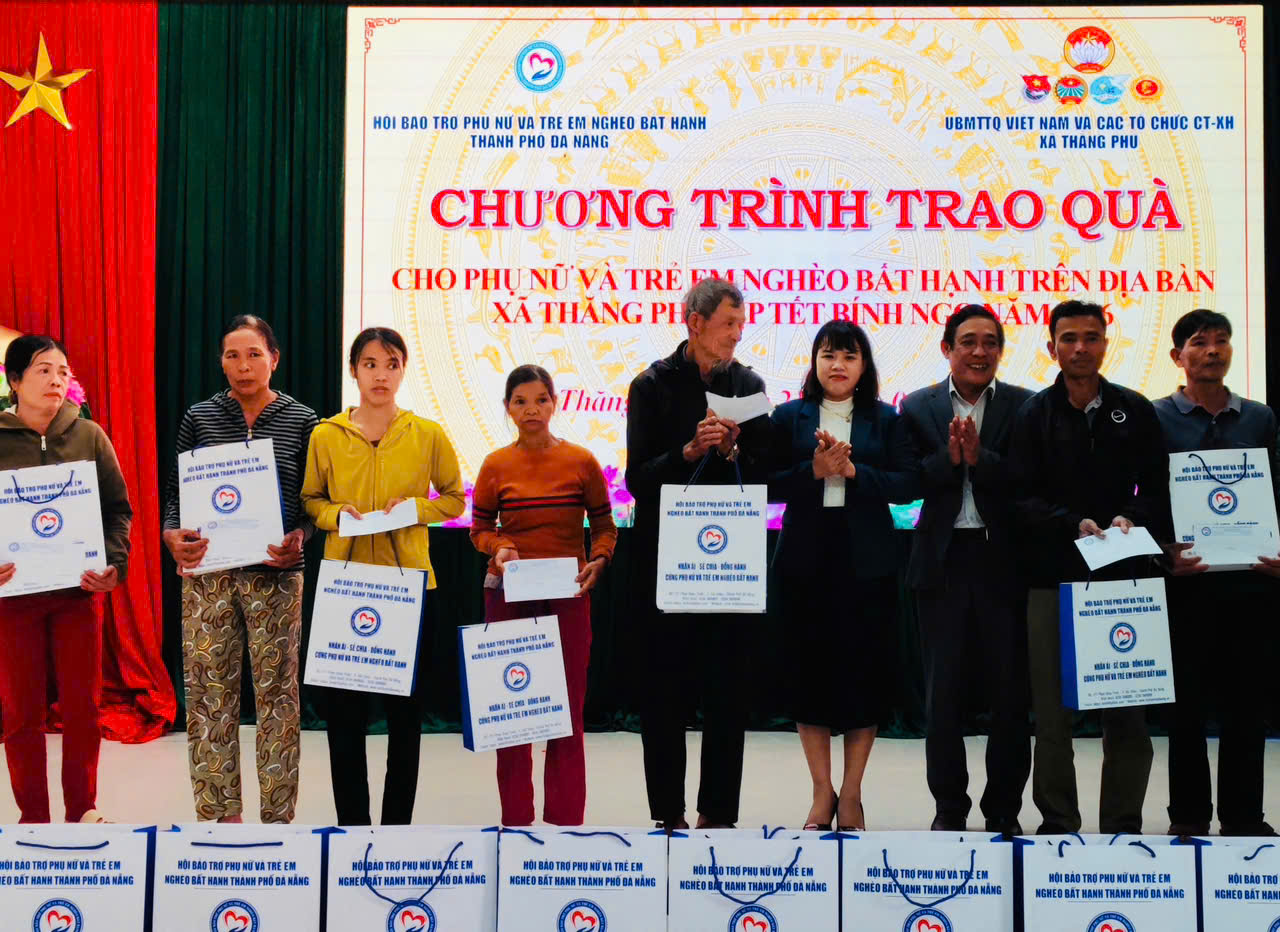 Chiều ngày 21.1 Hội Bảo trợ Phụ nữ và trẻ em nghèo bất hạnh thành phố Đà Nẵng phối hợp với Uỷ ban Mặt trận TQVN xã Thăng Phú tổ chức chương trình trao quà cho phụ nữ và trẻ em nghèo bất hạnh trên địa bàn xã nhân dịp tết Bính Ngọ năm 2026.