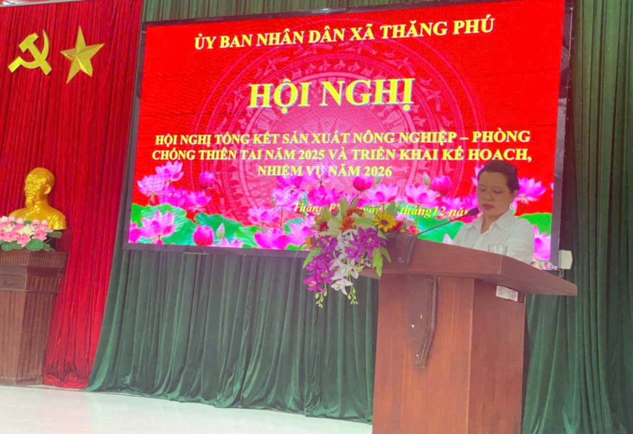 Năm 2026, xã Thăng Phú phấn đấu sản xuất hết diện tích. Theo đó, diện tích sản xuất lúa là 2.780 ha, vụ Đông Xuân sản xuất 1.508 ha; vụ Hè Thu sản xuất khoảng 1.272 ha; năng suất bình quân: 60,05 tạ/ha.