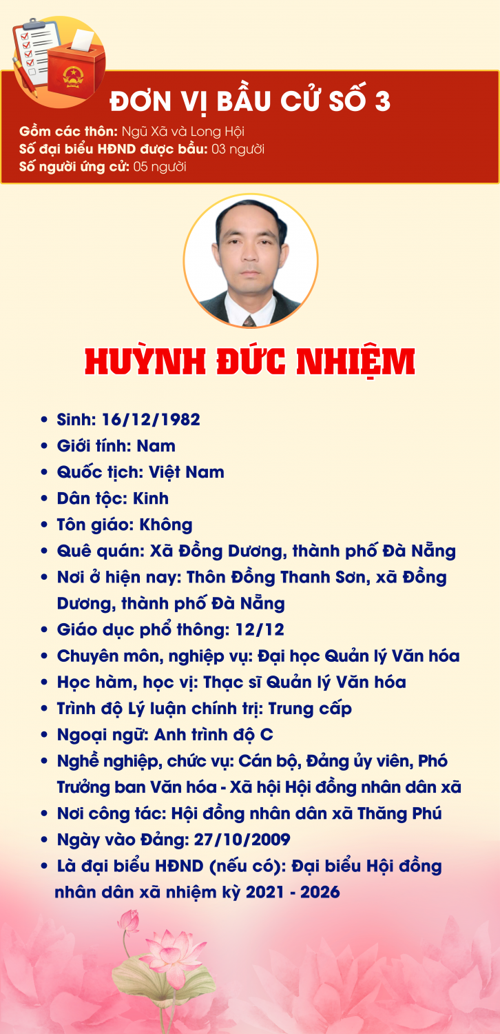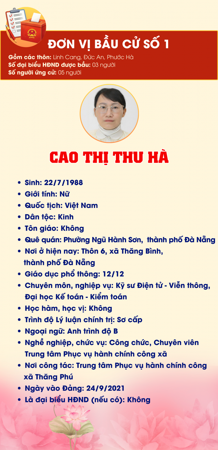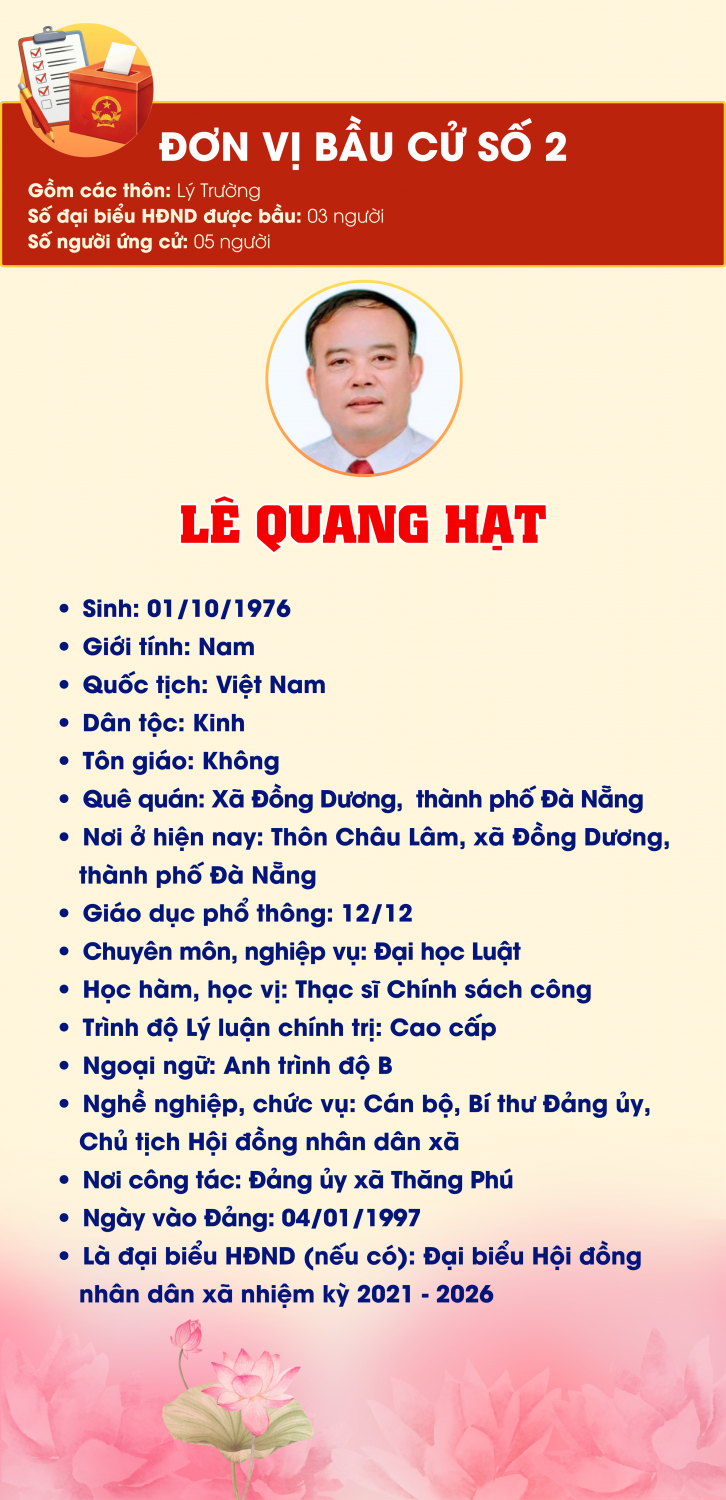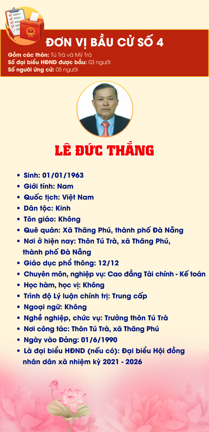 DANH SÁCH 30 NGƯỜI ỨNG CỬ ĐẠI BIỂU HĐND XÃ THĂNG PHÚ NHIỆM KỲ 2026-2031