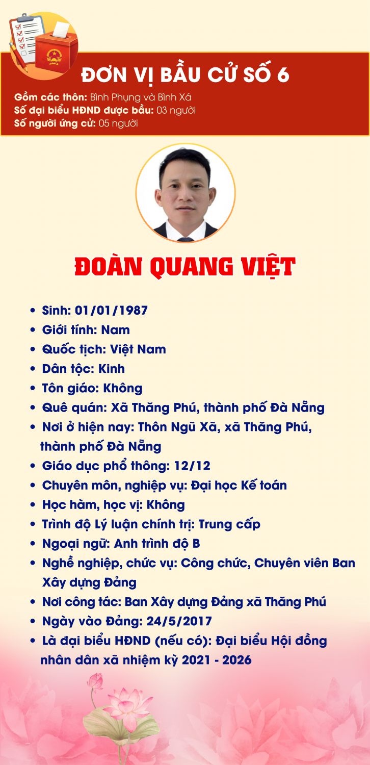 ĐƠN VỊ BẦU CỬ SỐ 6, GỒM: