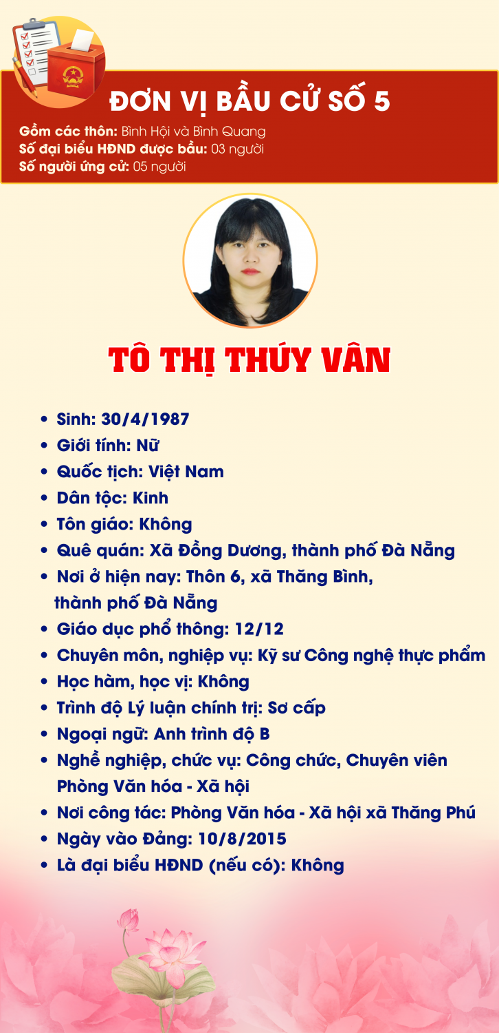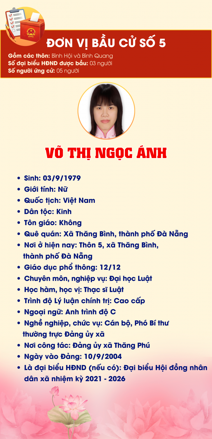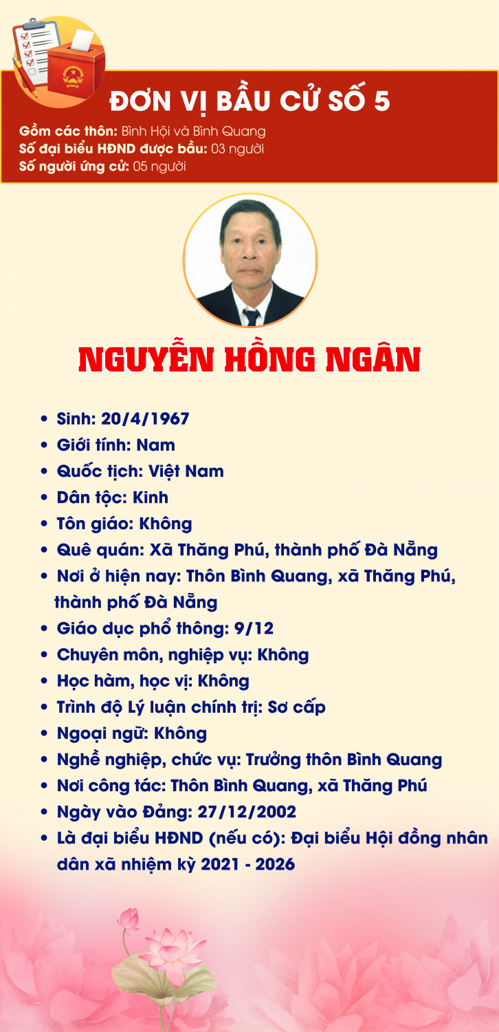 ĐƠN VỊ BẦU CỬ SỐ 5, GỒM: