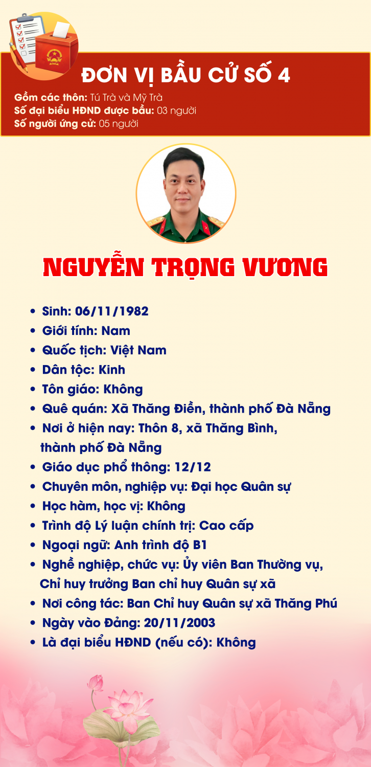 ĐƠN VỊ BẦU CỬ SỐ 4, GỒM: