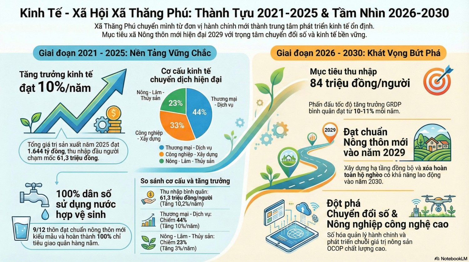 Những kết quả đạt được trong giai đoạn 2021–2025 là tiền đề quan trọng để xã Thăng Phú tiếp tục phát huy tiềm năng, lợi thế, nâng cao chất lượng tăng trưởng, hướng tới mục tiêu phát triển ổn định, bền vững trong giai đoạn 2026–2030.