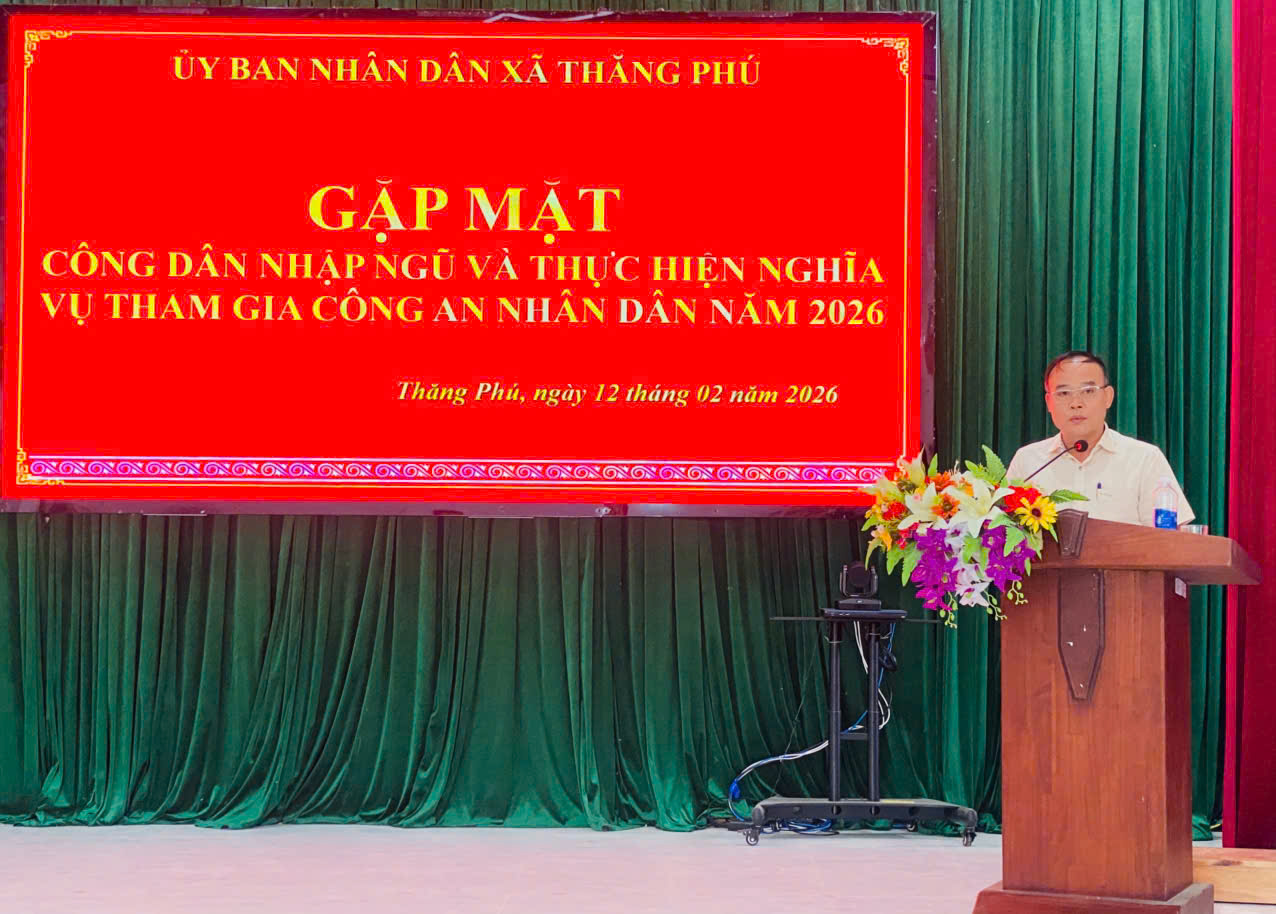 Phát biểu tại buổi gặp mặt, Bí thư Đảng uỷ xã Lê Quang Hạt cho biết, năm 2026, xã Thăng Phú đã tuyển chọn 42 thanh niên lên đường nhập ngũ vào các đơn vị Quân đội nhân dân (39 đồng chí) và Công an nhân dân (03 đồng chí), đạt 100% chỉ tiêu được giao, bảo đảm đầy đủ các tiêu chuẩn về chính trị, phẩm chất đạo đức, trình độ văn hóa và sức khỏe.