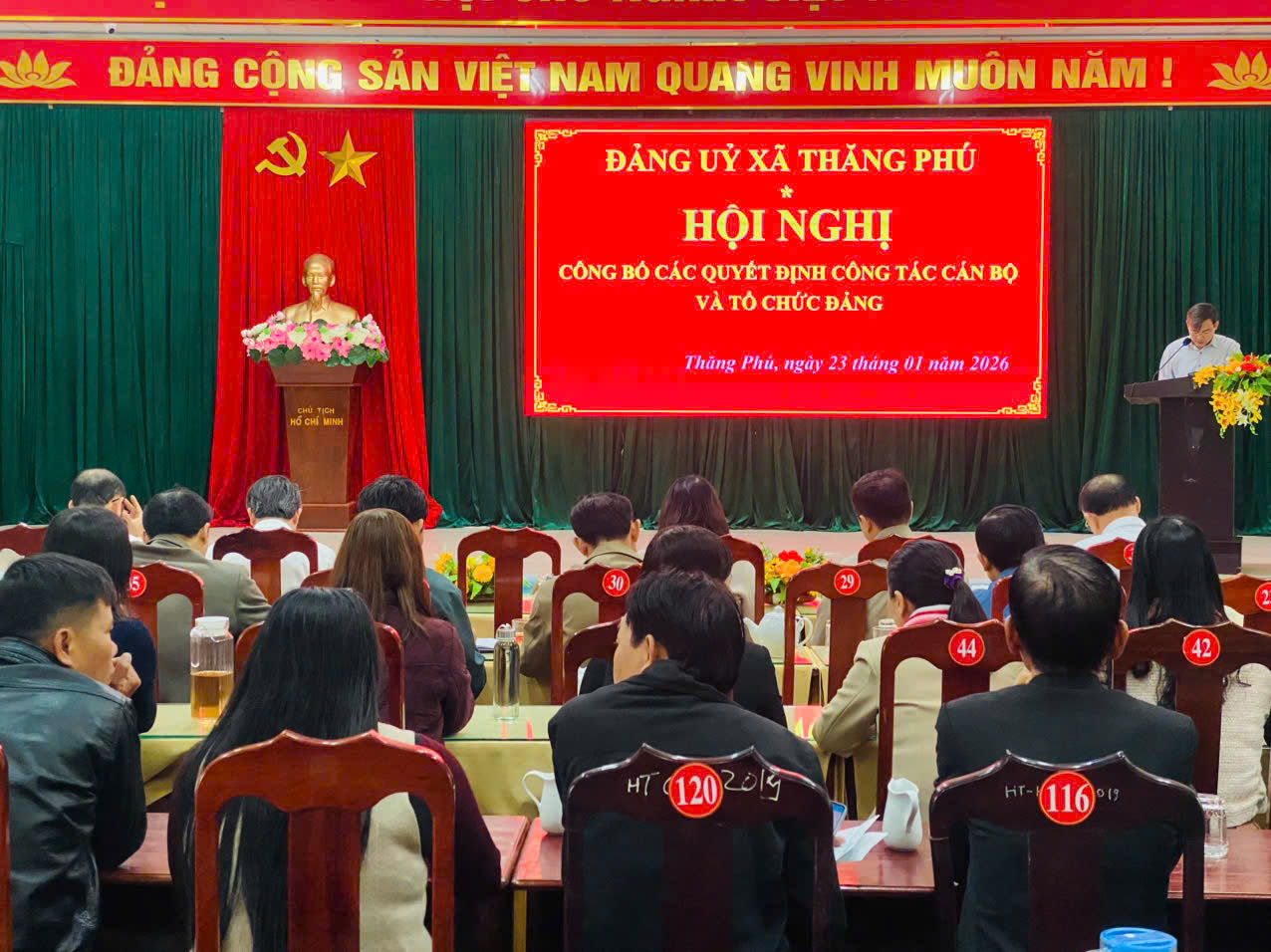 Tại hội nghị, Đảng ủy xã Thăng Phú đã công bố quyết định của Thành uỷ Đà Nẵng chỉ định Thượng tá Nguyễn Trọng Vương – Chỉ huy trưởng Ban Chỉ huy quân sự xã tham gia Ban chấp hành, Ban thường vụ Đảng uỷ xã. Công bố quyết định thành lập các chi bộ trường học, trạm y trên địa bàn xã.
