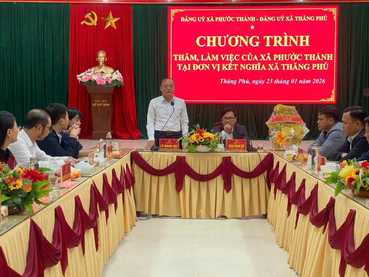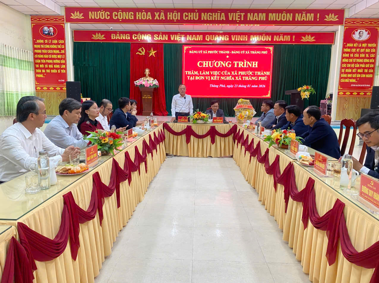Tại buổi làm việc, 2 địa phương kết nghĩa Thăng Phú và Phước Thành cũng cùng nhau trao đổi kinh nghiệm trong vận hành chính quyền địa phương 2 cấp cũng như đẩy mạnh phát triển kinh tế. Đây cũng là tiền đề quan trọng để 2 địa phương cùng nhau phát triển, nâng cao đời sống cho người dân.